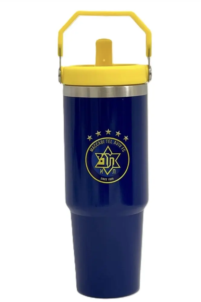 כוס מתכת עם קש 700 מ"ל מכבי תל אביב