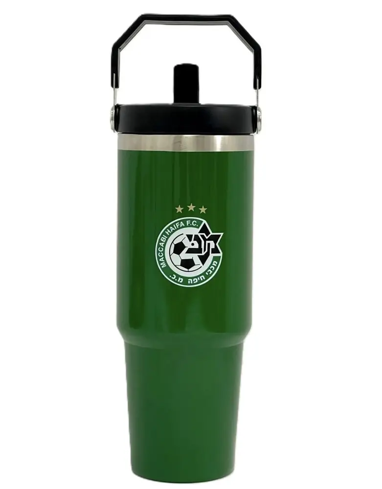כוס מתכת עם קש 700 מ"ל מכבי חיפה