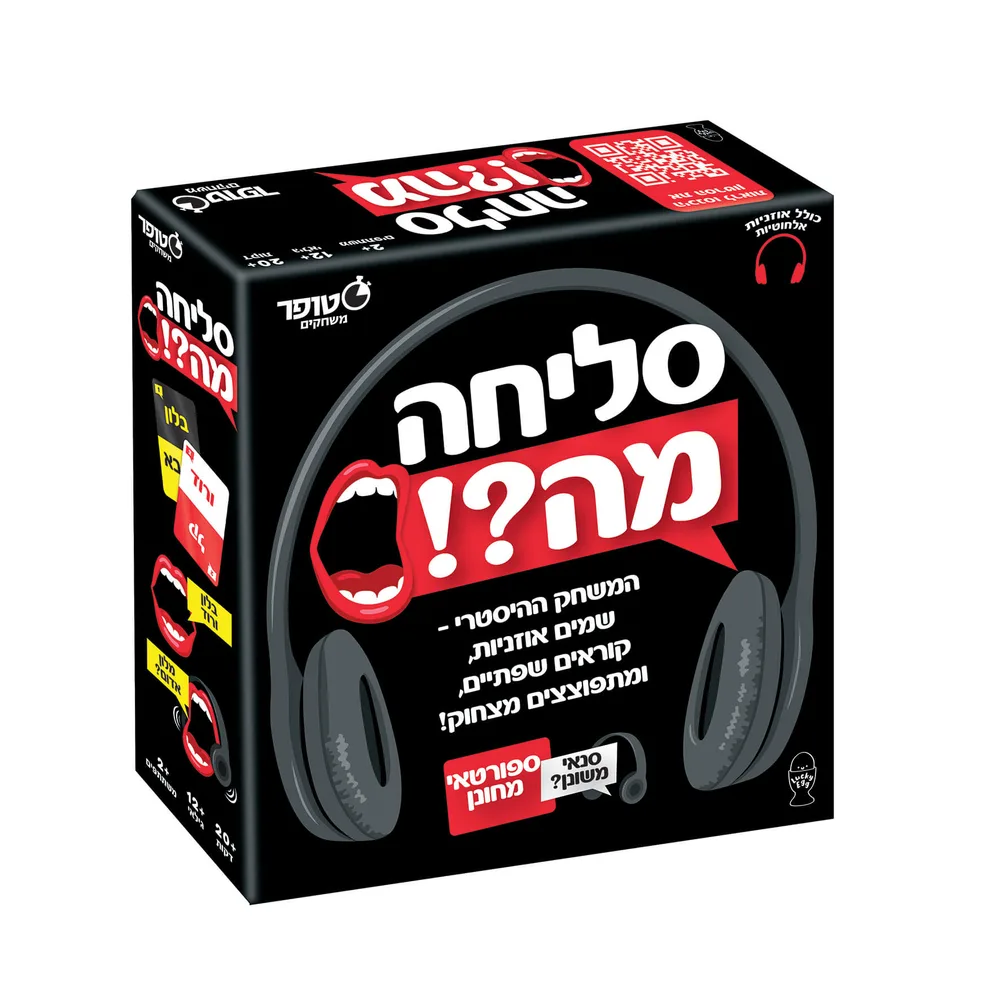סליחה, מה?!" הוא משחק קריאת שפתיים לנוער ומבוגרים (גיל 12+), המבטיח למלא את ערב המשחקים שלכם בהמון צחוקים ורגעים מביכים!